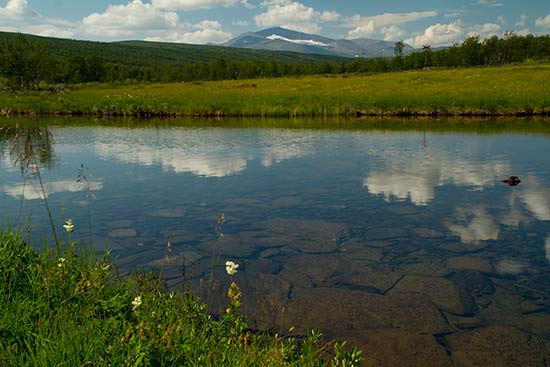 Pour accéder au départ de la rando, on passe par Messlingen puis emprunte sur la gauche une piste privée payante (40 Skr), roule 2km avant d’atteindre le parking. Circuit de 6km en 3h.