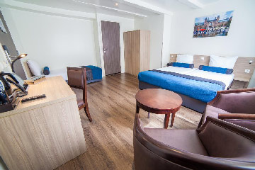 - Chambres avec TV, coin salon et plateau/bouilloire