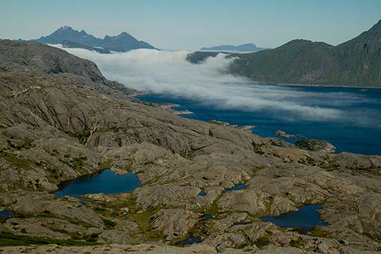 - Randonnée sur l’île de Vestvågøya au sommet Bulitinden : on est pour ainsi dire seuls sur cette randonnée. Très beau belvédère avec vue plongeante sur la mer et les enfilades de pics.