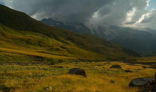 On prend le chemin du retour en vitesse accélérée. On redescend sous une pluie fine et poursuivit par les claquements réguliers du tonnerre. Des percées du soleil à travers les nuages noirâtres illuminent par touche le paysage et le transfigure.