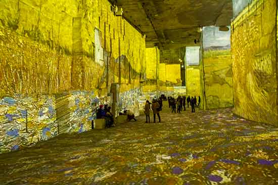 Exploitées jusqu’en 1936 pour extraire des blocs de calcaire, les carrières ont connu une renaissance magistrale : elles ont été réhabilitées en centre d’arts numériques. Des murs taillés de près de 10m de haut servent d’écrans pour projeter des œuvres d’art de taille XXL.
