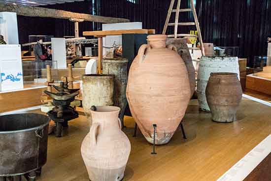 Les 2 autres cultures sont les oliviers et la vigne. Des objets, des vidéos permettent de découvrir ces cultures avec la fabrication de l’huile d’olives et du vin.